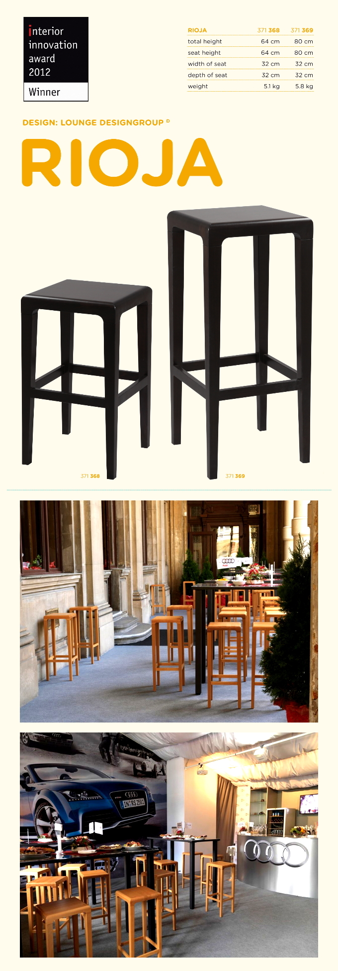 此外,Rioja更榮獲2011德國科隆家具展‧室內創新大獎 (Interior Innovation Award 2011)之殊榮。